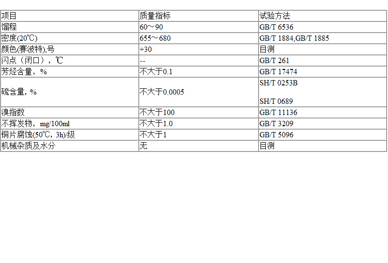 清源90#溶劑油是以加氫裂化餾份油或低硫直餾航煤為原料,經(jīng)深度加氫精制分餾而成,它的性能優(yōu)點(diǎn)為溶解力強(qiáng),揮發(fā)性好,飽和烴含量大于99%,產(chǎn)品安定性好,產(chǎn)品餾份窄。可度身定制。